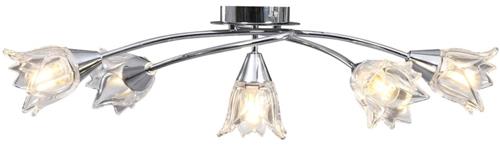 Deze exclusieve vidaXL plafondlamp met glazen tulpvormige kappen zal een elegante touch toevoegen aan elke woonkamer of slaapkamer. Met vijf verchroomd stalen buizen en transparante, tulpvormige lampenkappen straalt deze lamp een tijdloze stijl uit. De satijn verchroomde afwerking zorgt voor een eigentijdse uitstraling die perfect past bij elk modern interieur. Met een totale afmeting van 64 x 30 x 20 cm (L x B x H) en een diameter van 10 cm per lampenkap, is deze lamp een ware blikvanger.