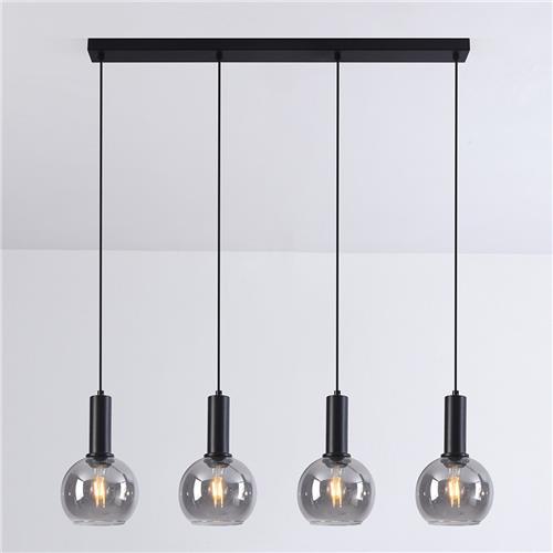 Hanglamp Imke heeft een basis van zwart metaal met vier rookglazen hangers. De hanglamp heeft een afmeting van 90 x 120 cm en is makkelijk in te korten naar de gewenste hoogte, waardoor je de perfecte sfeer kunt creëren in jouw interieur. Met een diameter van 15 cm per hanger en een E27 fitting is deze lamp geschikt voor diverse lichtbronnen.